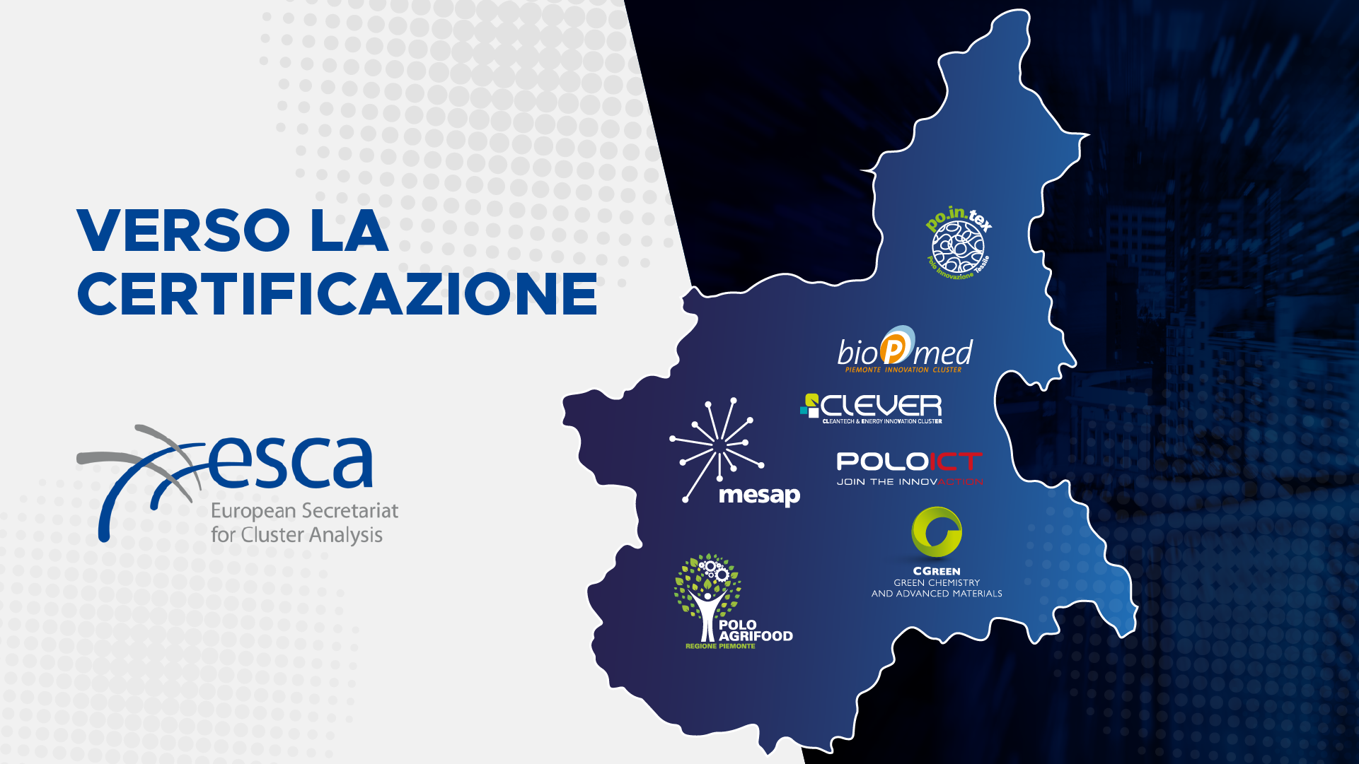 I Poli di innovazione piemontesi hanno avviato un percorso strutturato di rafforzamento organizzativo e strategico finalizzato all’ottenimento della certificazione ESCA, secondo gli standard definiti dallo European Secretariat for Cluster Analysis.